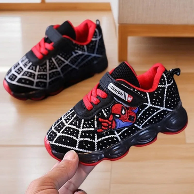 2025 New Boys Breathable Lighted Sneakers Spiiderman Children's Luminous Shoes Student Teenager Sport Shoes Kids Casual Shoes