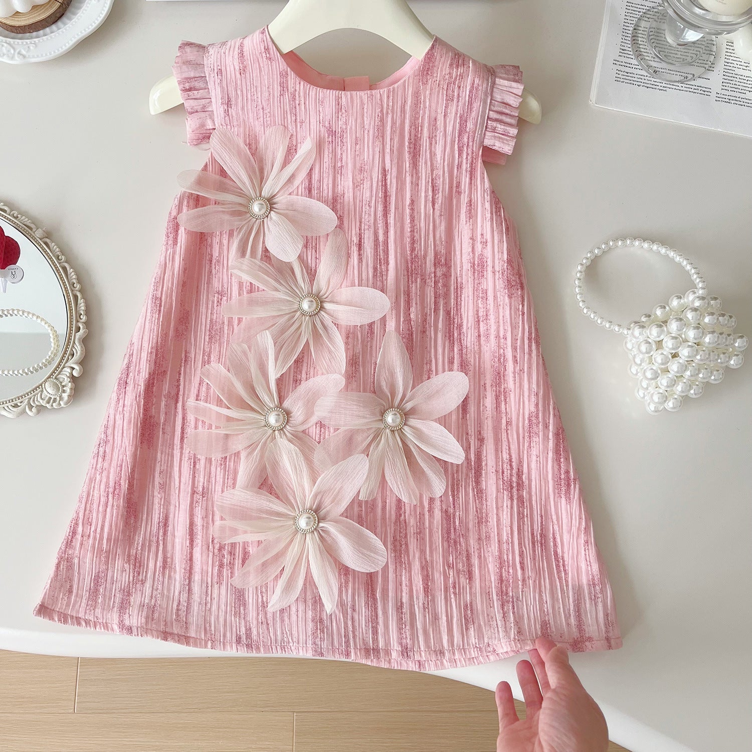 2025 Summer New Korean Girls Cute Three-Dimensional Flower Sleeveless Dress Girls Casual Daily Dress