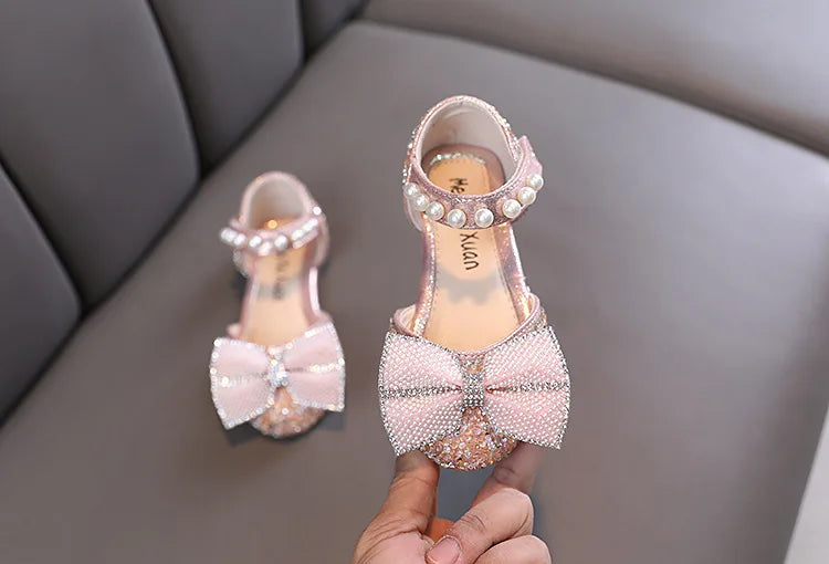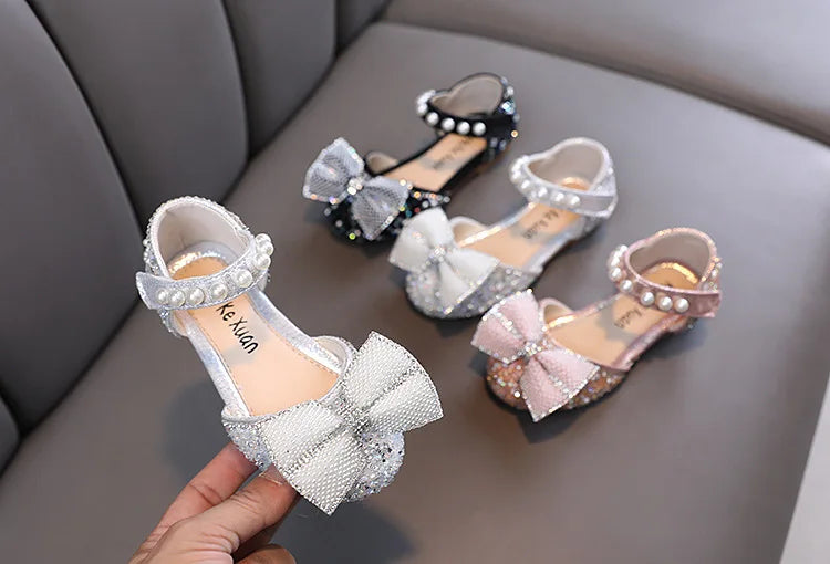 • 2026 Kids Shoes Summer for Girl Sandals Fashion Sequins Rhinestone Bow Girls Princess Shoe Soft Bottom