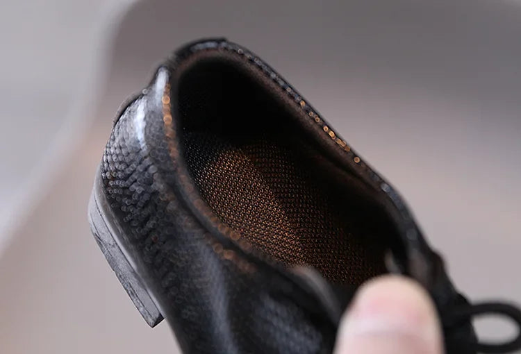 Boy Leather Shoe Black White Versatile Children's Flats for School Performance Causal Fashion Lace-up Kids Formal Uniform Shoes