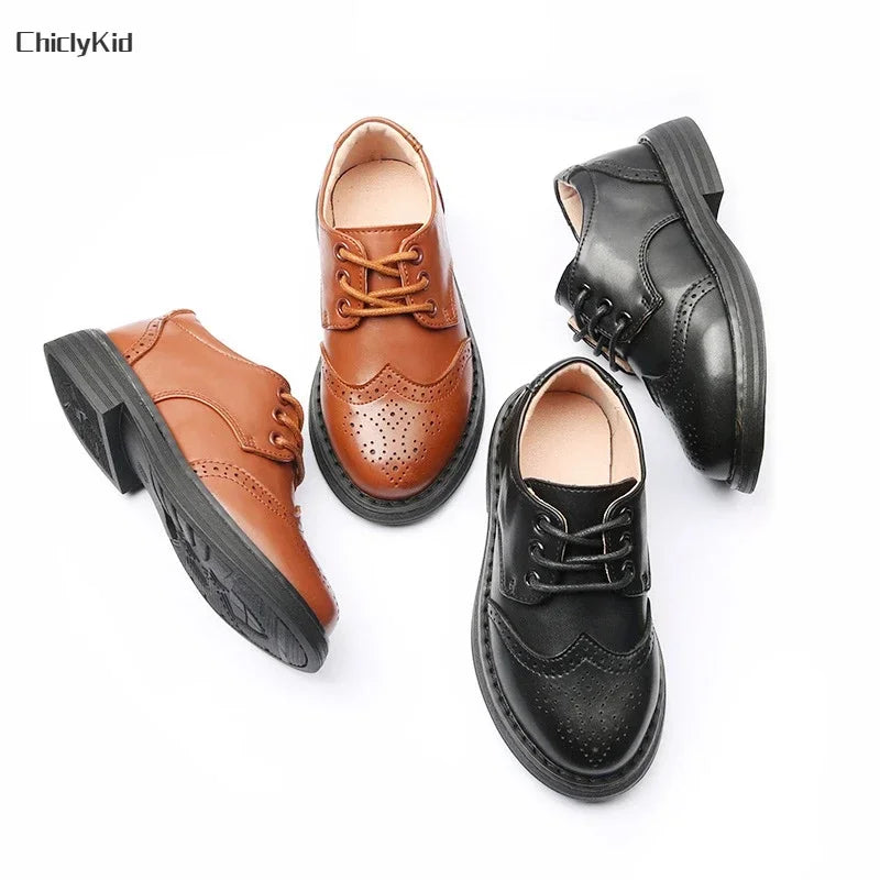 Boys Hollow Out Shoes Leather for Kids Party Wedding Dance Shoes Dress School Toddler Fashion Children Shoe Flat Black Brown