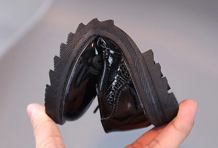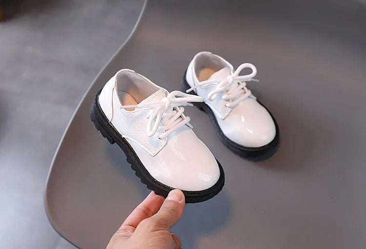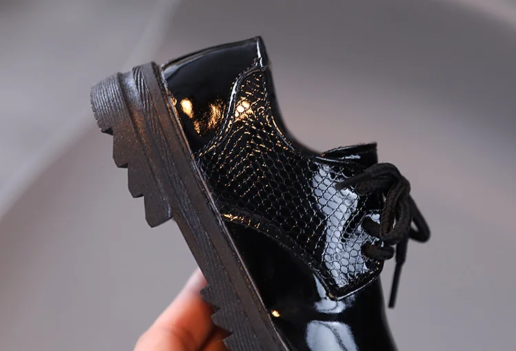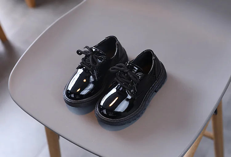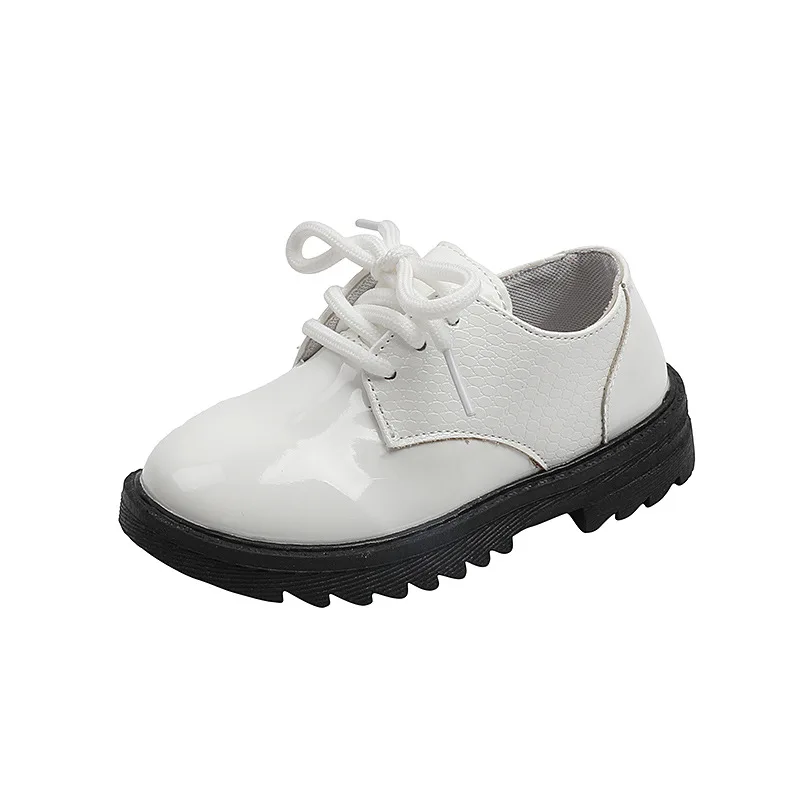 Boys Performance Leather Shoes Spring and Autumn New 2023 Britain Style All-match Black Children's Fashion Black Lace-up Simple
