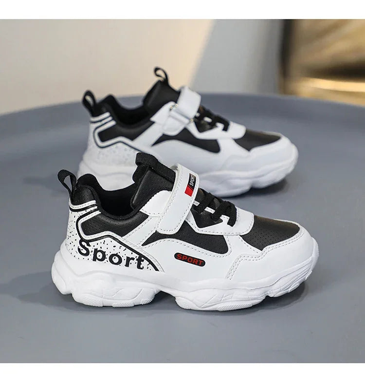Boys Shoes Sneakers Leather Children Comfortable Flat Shoes Black White Shoes for Kids Girls School Walking Footwear Non Slip