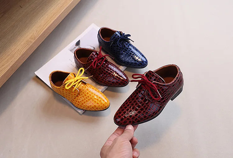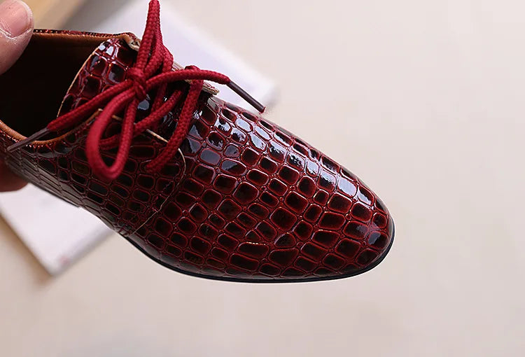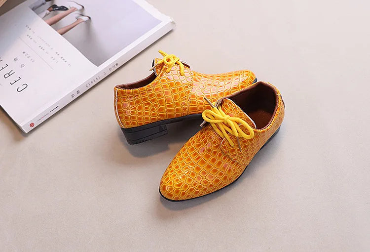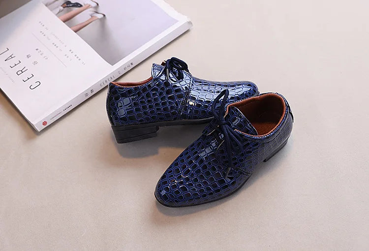 Children Boys Leather Shoes 2025 New Retro Fashion Lace Up Pointed Toe Dress Shoes Uniform Kids Oxford Performance Flats Shoes