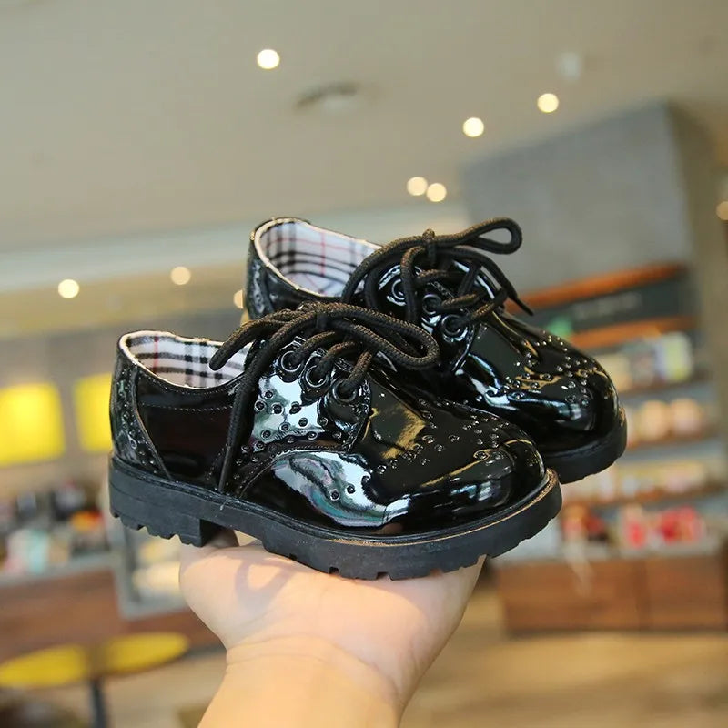 Children's Leather Shoes Round Toe Lace-up Elegant Spring Soft Comfy 21-37 Baroque Style Kids Casual Shoe Boys Girls Flat Shoes