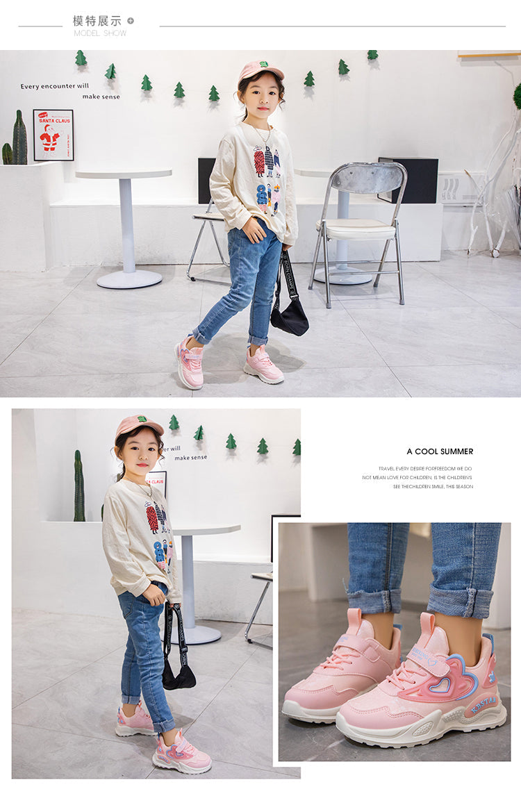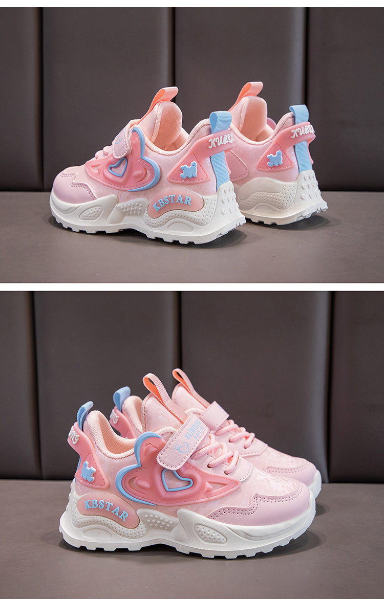 Children's Running Shoes Girls Sneakers Fashion Classic Hot Sale Kids School Casual Sports Shoes Anti-skid Pink with Love Heart