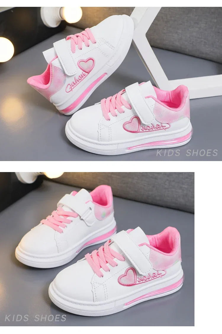 Children's Sneakers 2024 New Girls Love Embroidery Casual Shoes Fashion Leather Kids School Running Sports Shoes Soft Hook Loop