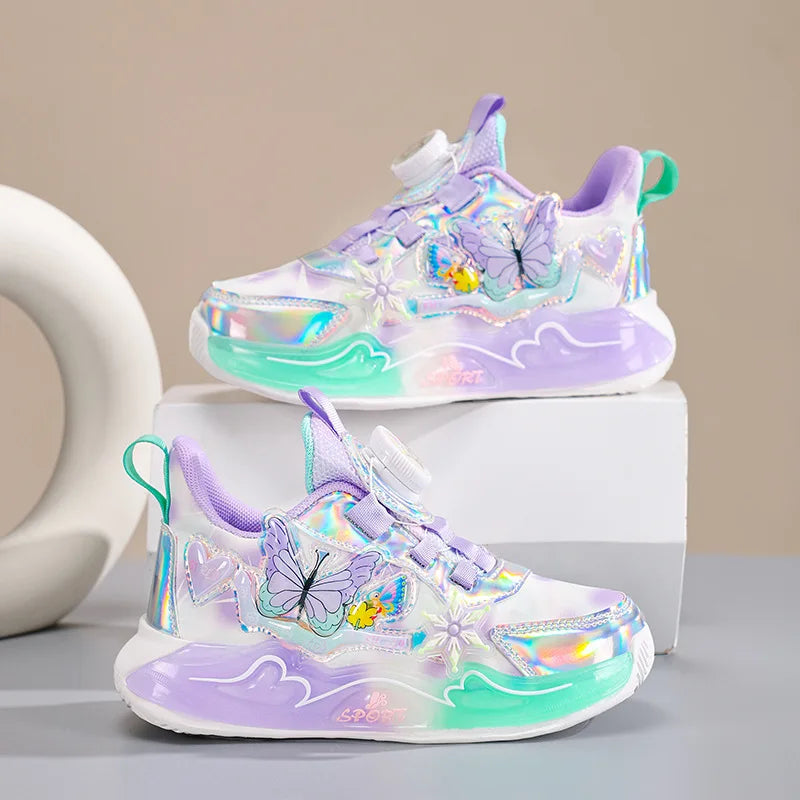 Children's Sneakers 2025 New Girls' Sports Shoes Mesh Breathable Kid's Running Shoes Rotating Buckle Soft Sole Causal Shoes