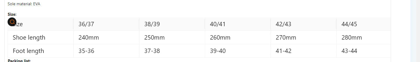 Shoe Upper material: EVA