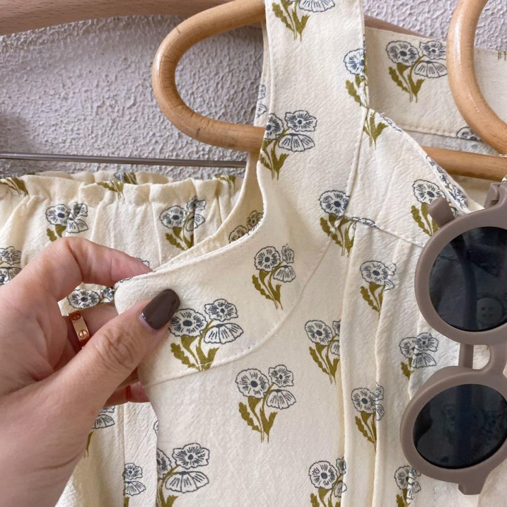 Floral Suit Little Girl Western Style Camisole All Match Casual Pants