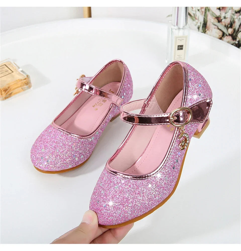 • Girl High Heels Princess Shoes Halloween Cosplay Kids Shiny Party Dress Up Leather Shoe for School Uniform Wedding