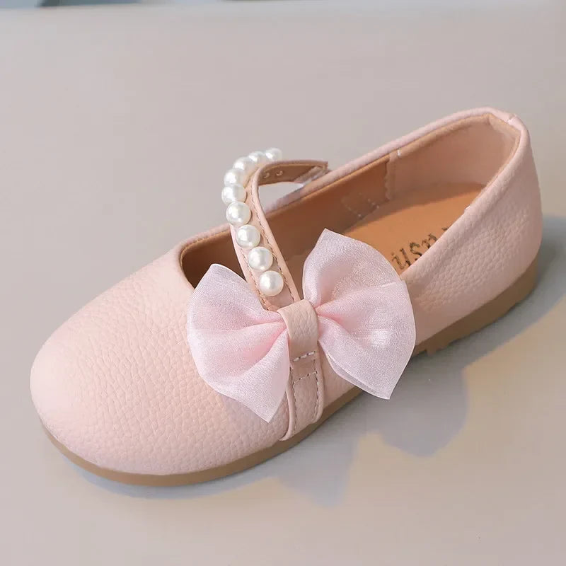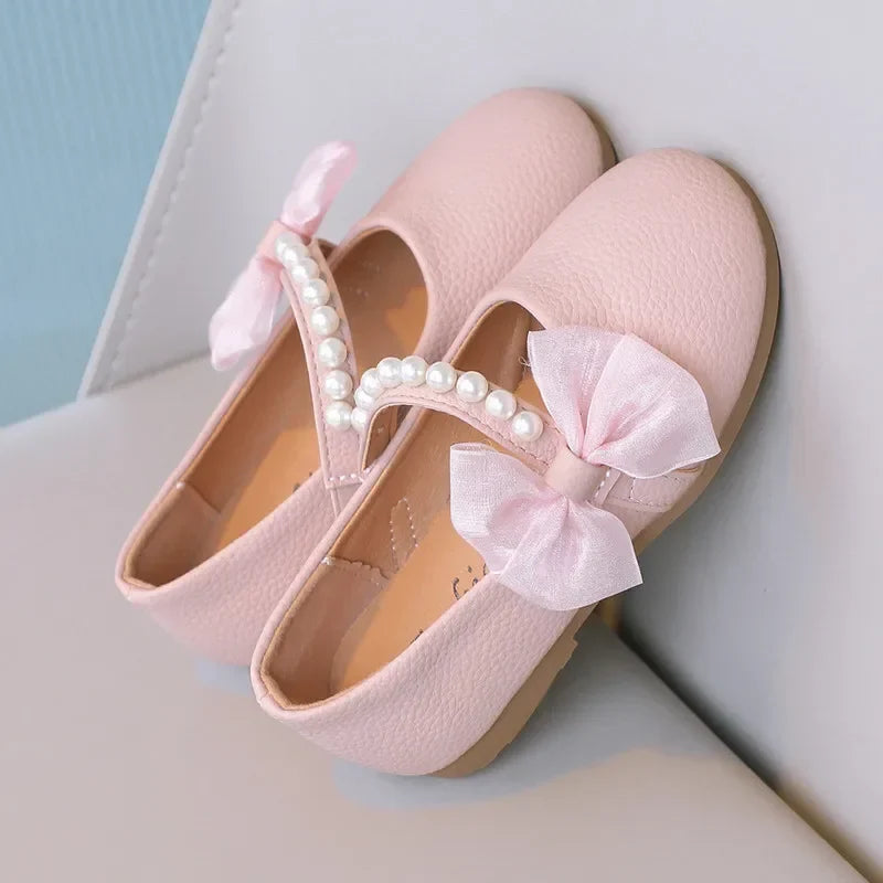 Girls Pearls Leather Shoes for Party Wedding Children Elegant Princess Shoes with Bow-knot Kids Flats Mary Janes Shoes Round-toe