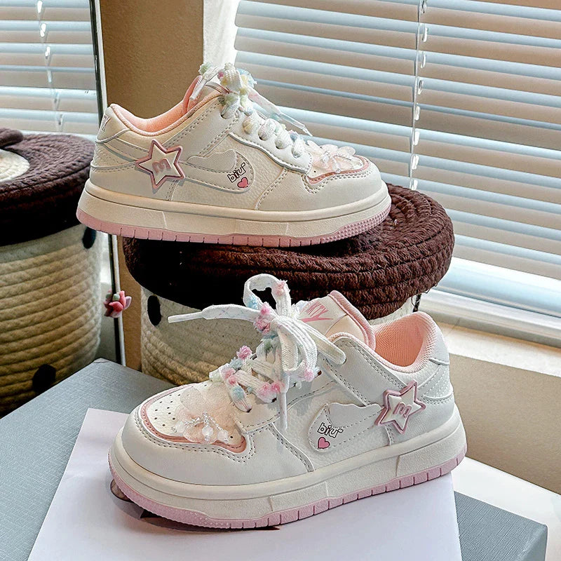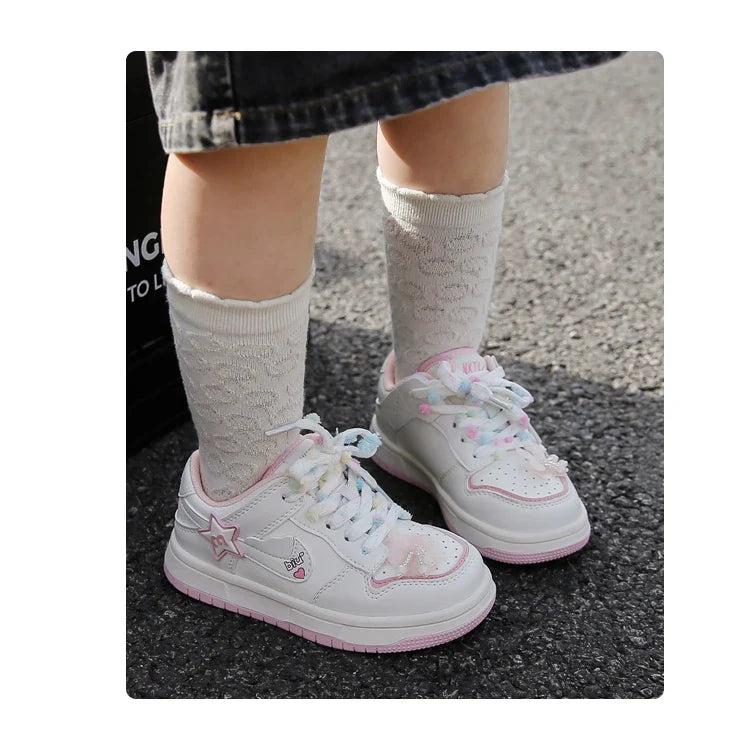 Girls' white sneakers 2025 autumn New leather breathable casual shoes, girls' soft-soled sports shoes and running shoes