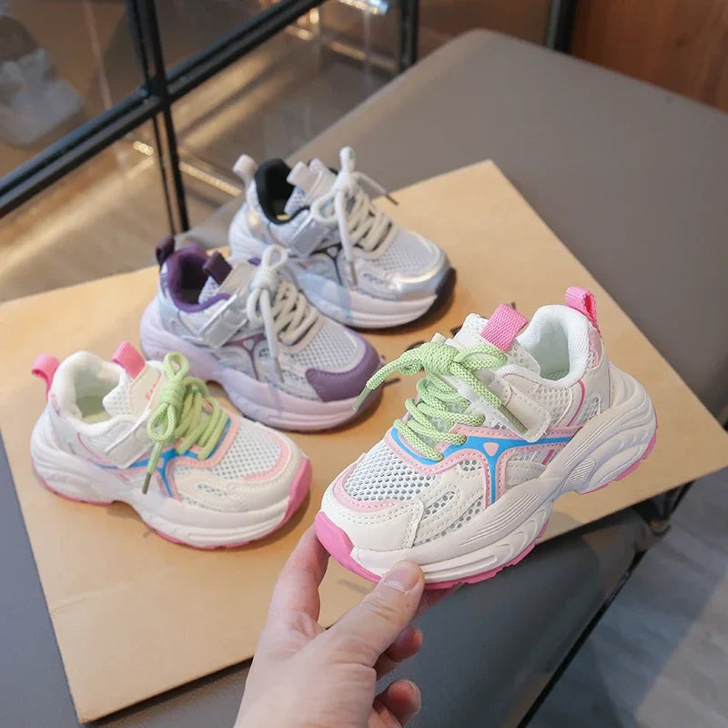 Kids Sneakers Mesh Breathable Girls Running Shoes Non-slip Thick Soft Sole New Children Sports Shoes Mesh Breathable Trendy