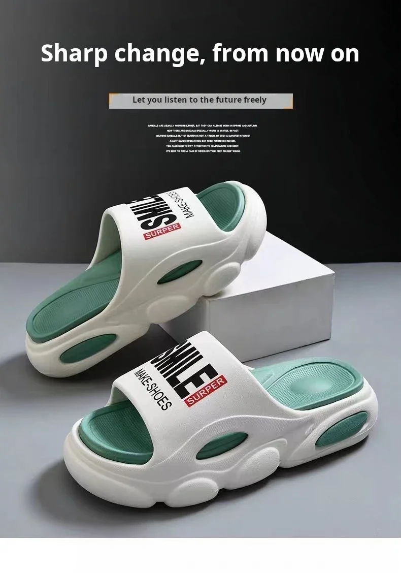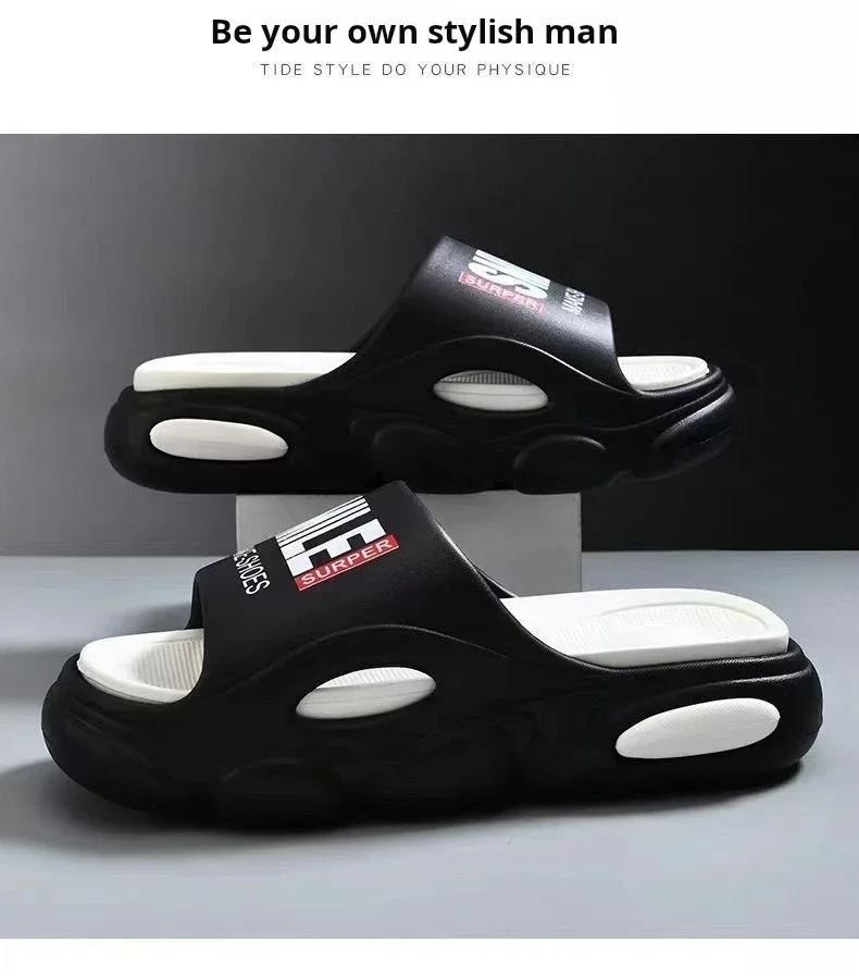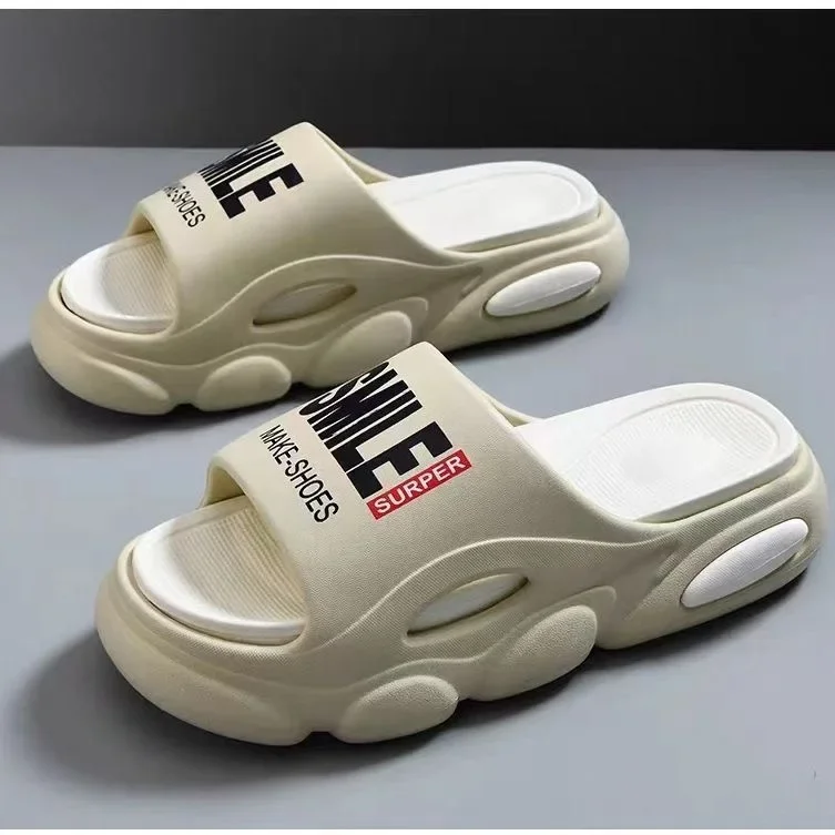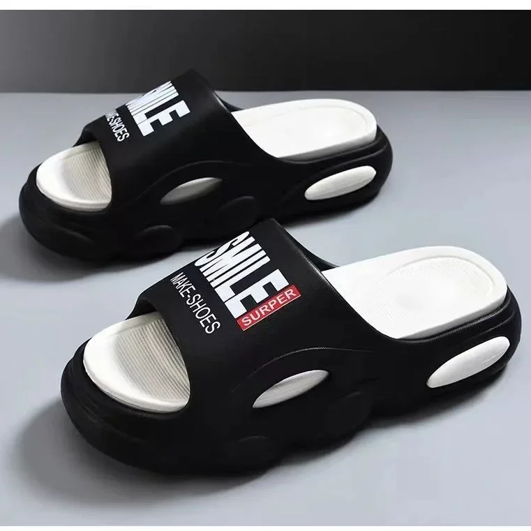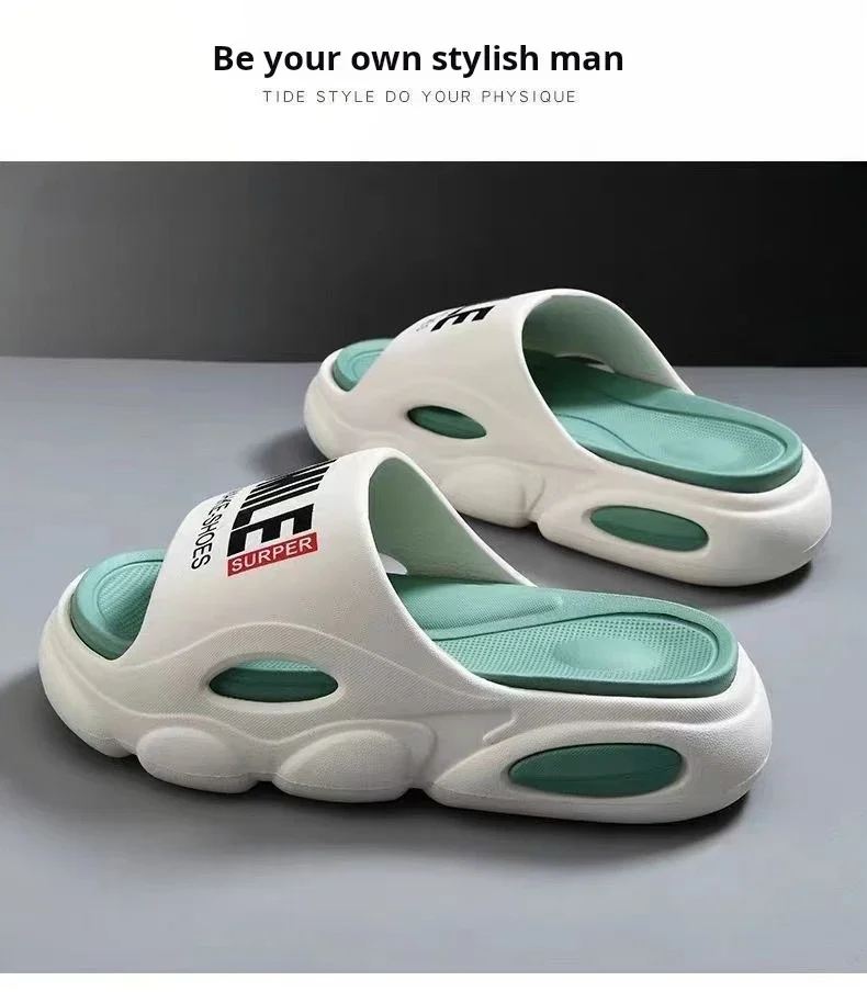 Men Thick Sole Summer Beach Slides Bathroom Anti Slip Slipper Soft Sandals Light Letter Shoes Men Slippers Platform Sandals