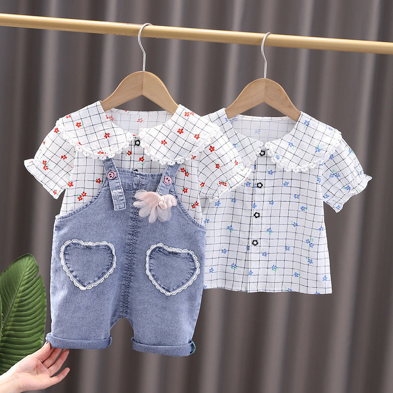 • Shirt Short Sleeve Bib Clothes Children's Summer Two Piece Set