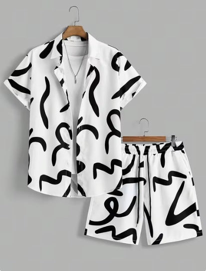 Short Sleeve Men's Summer Loose Foreign Trade Cross-border Casual Hawaiian Floral Beach Shirt Shorts ( Available )