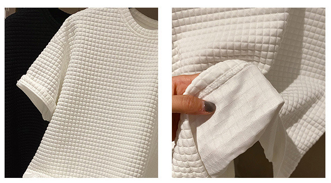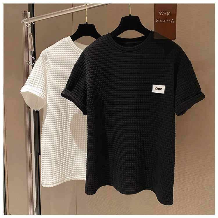 Spring And Summer New Short Sleeve T-Shirt Waffle Letter Loose Round Neck Pullover T-Shirt