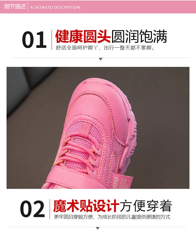 Spring New Kids Sneakers 2023 PU Girls Casual Mesh Solid Pink Light Boys White Hook & Loop Children Non-slip Sports Shoe Fas
