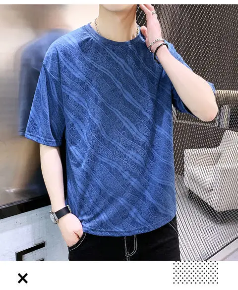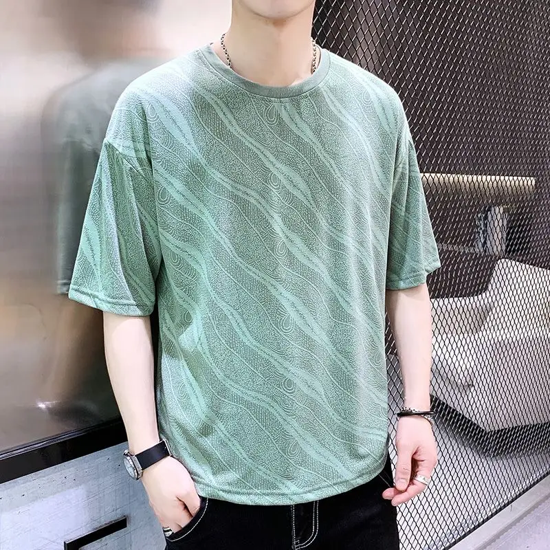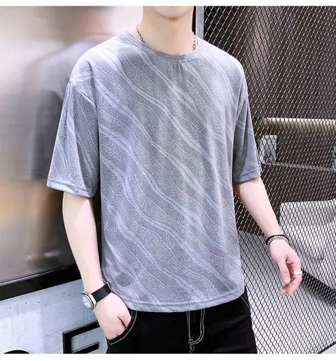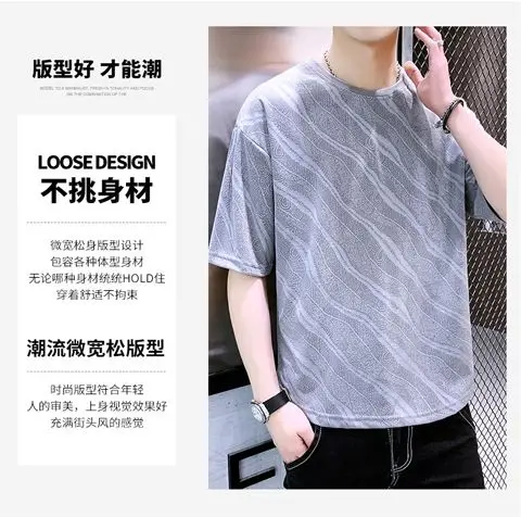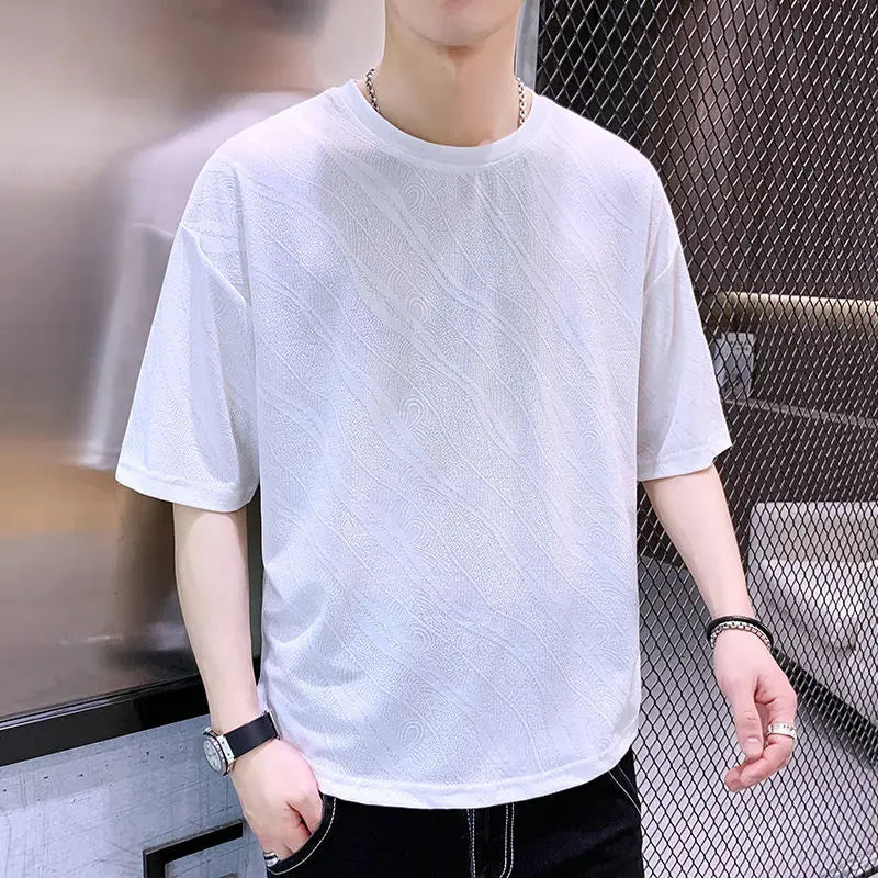 Summer Ice Silk Short-sleeved T-shirt for Men Loose and Breathable Trendy and Stylish Short-sleeved Top