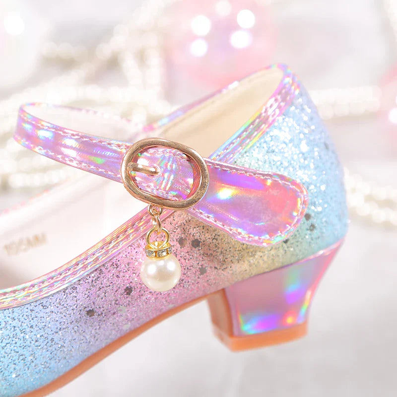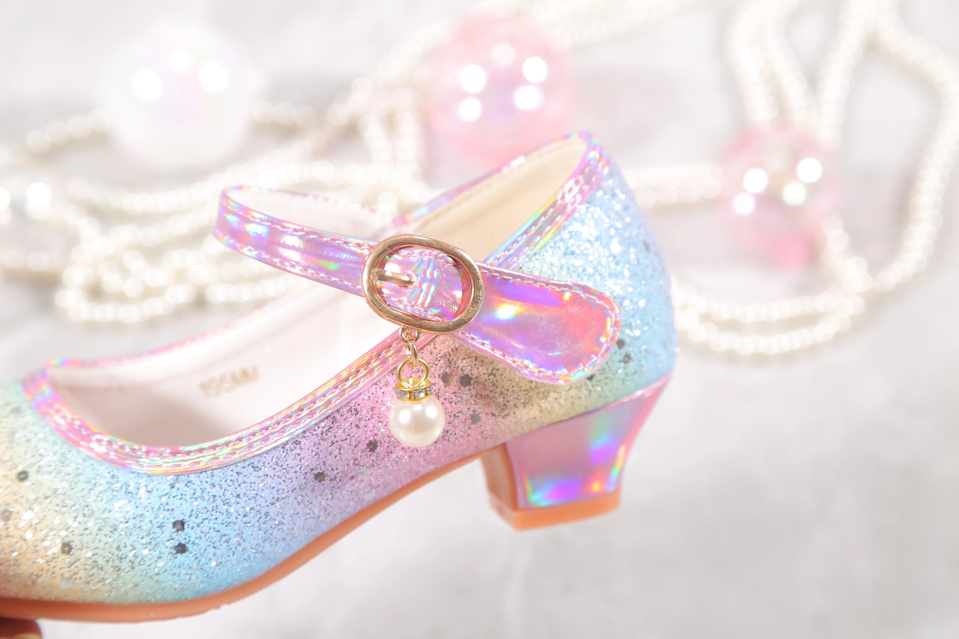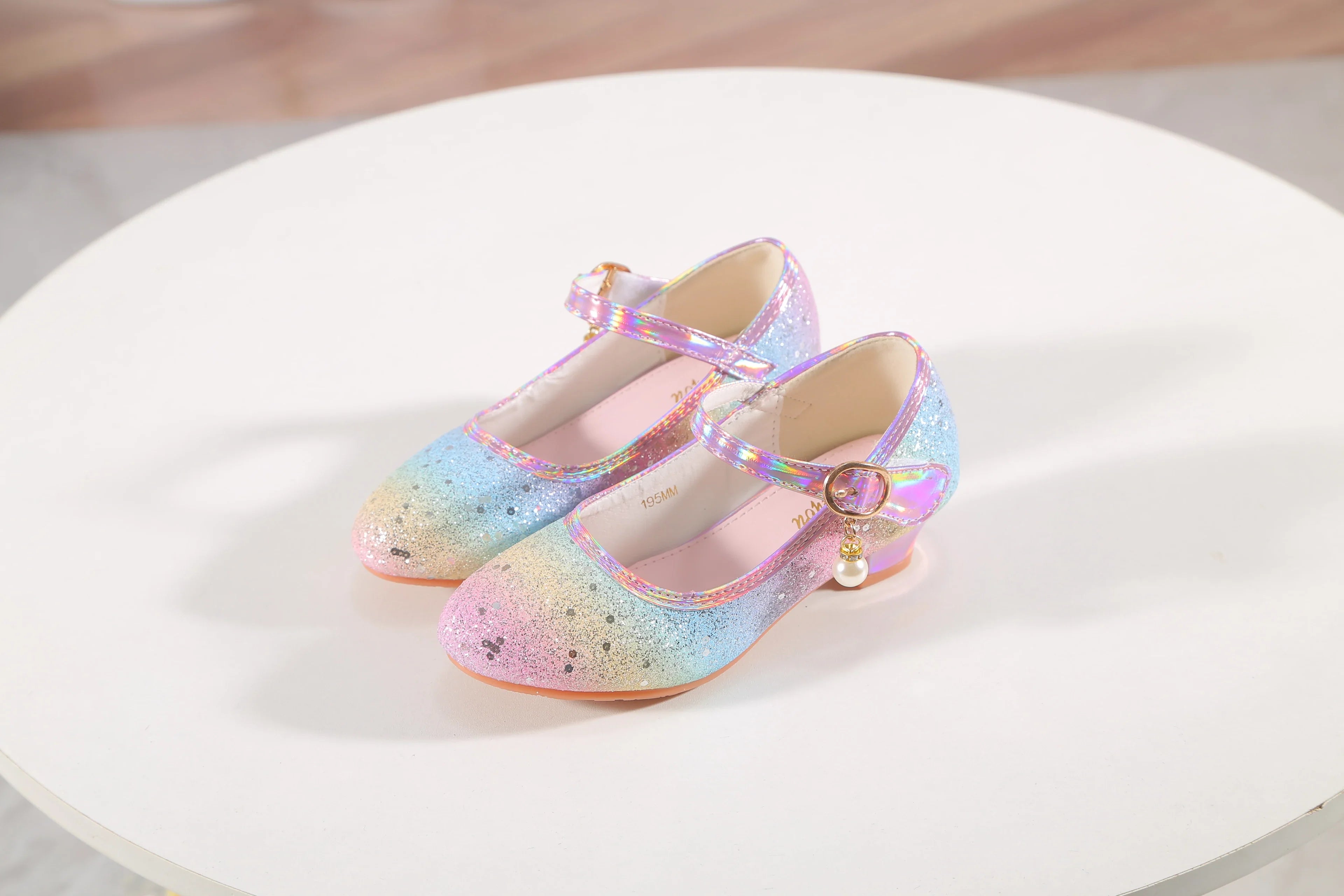 YUNICUS Girls High Heels Princess Shoes Students Children's Single Shoes Little Girl Performance Sequins Glitter Leather Shoes